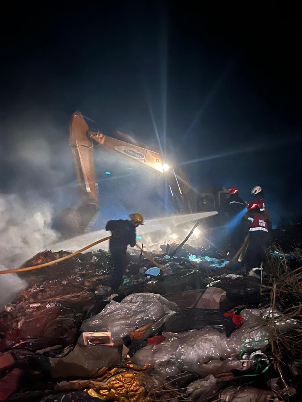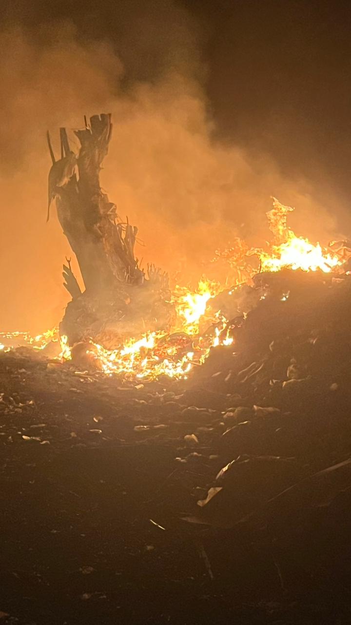 A las tareas de extinción realizadas por los bomberos se sumó una retroexcavadora municipal, que continuó trabajando hasta altas horas de la noche con el objetivo de remover residuos y evitar posibles reinicios del fuego.
