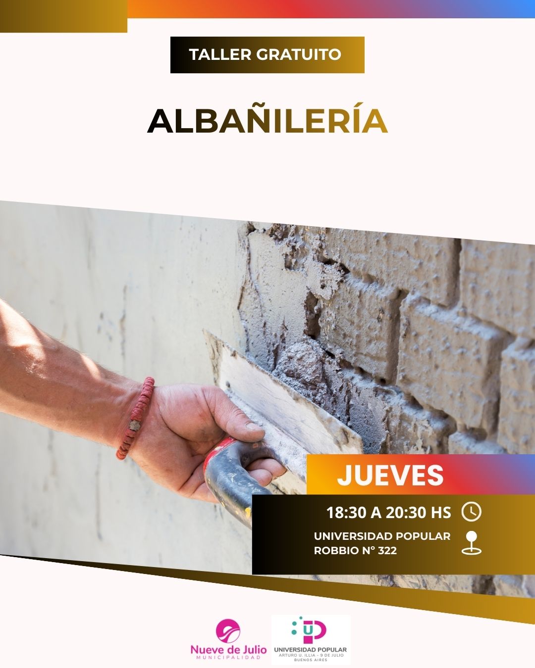 Albañilería: Jueves de 18:30 a 20:30 hs.