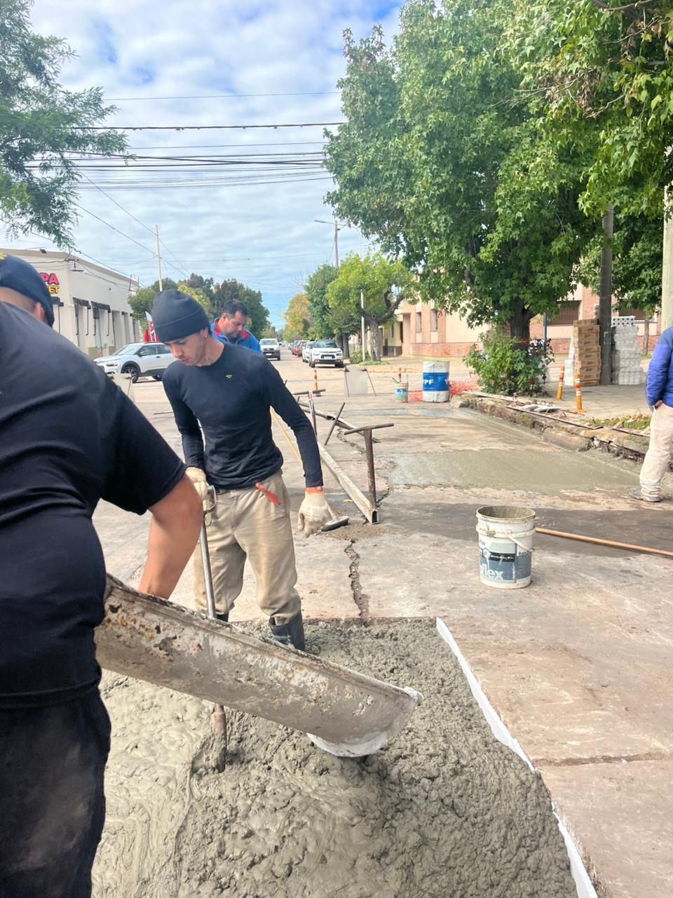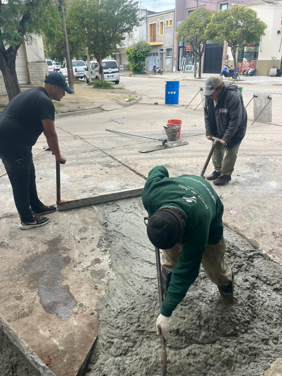 En la misma, se procedió en la mañana de hoy a la colocación de hormigón en los paños restantes de la esquina, donde ya se había realizado el reemplazo de uno de los sectores semanas atrás, ya que presentaba deterioro y elevaciones que impedían la normal circulación.